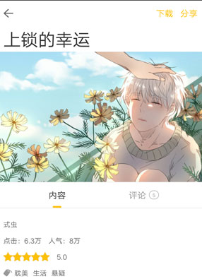 简介: 《上锁的幸运》漫画简述:暑假期间,一次被表格威逼利诱的快递工作,让桐克认识了一个貌似自闭的男孩幸生,多次的接触,让他们之间的复杂感情混乱了彼此,而就在此时,桐克居然发现了幸生的‘幽禁’秘密...
